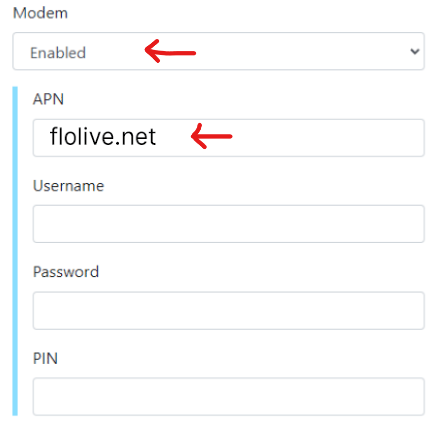 Finally, set modem to Enabled
